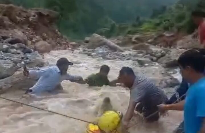 उफनते गदेरे में बहा विधायक का गनर, देखें वीडियो