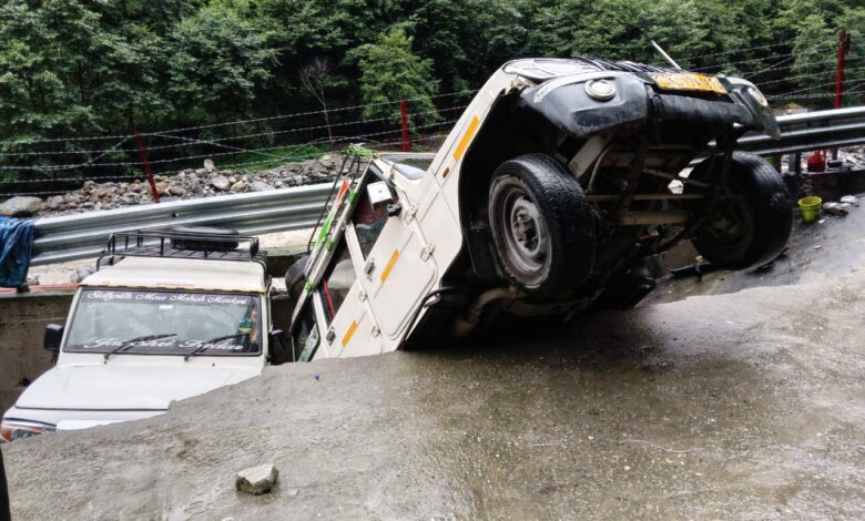 आपदा प्रबंधन अधिकारी ने बताया कि सोनगंगा नदी का कटाव तेज बना हुआ है। देर शाम जेसीबी (डोजर) मशीन की मदद से धंसाव में फंसे वाहनों को बाहर निकाल लिया गया।