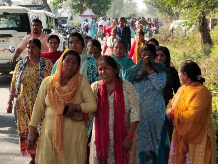 आक्रोशित लोगों ने लगाया जाम, ट्रैक्टर चालक हिरासत में