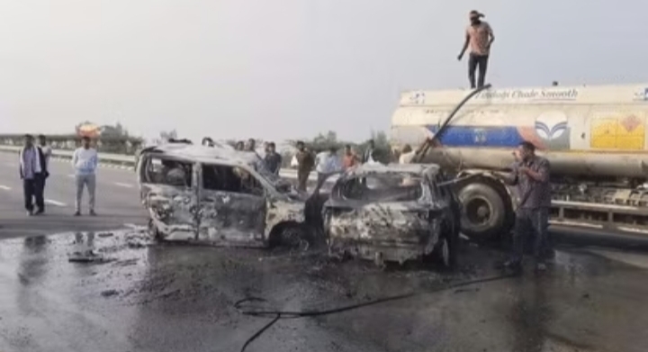 वेगनआर में लगी आग, दीवान के परिवार सहित पांच की मौत, कई घायल