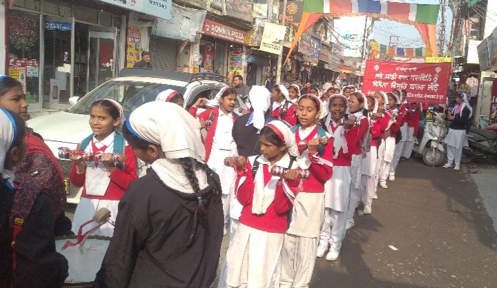 नगर कीर्तन में श्री गुरु नानक गर्ल्स इंटर कॉलेज की छात्राएं अपनी प्राचार्या रणजीत कौर की अगुवाई में अनुशासित पंक्तियों में चलती नजर आईं। बच्चों में अनुशासन, श्रद्धा और उत्साह का अद्भुत संगम देखने को मिला।