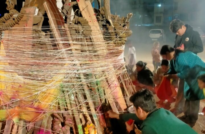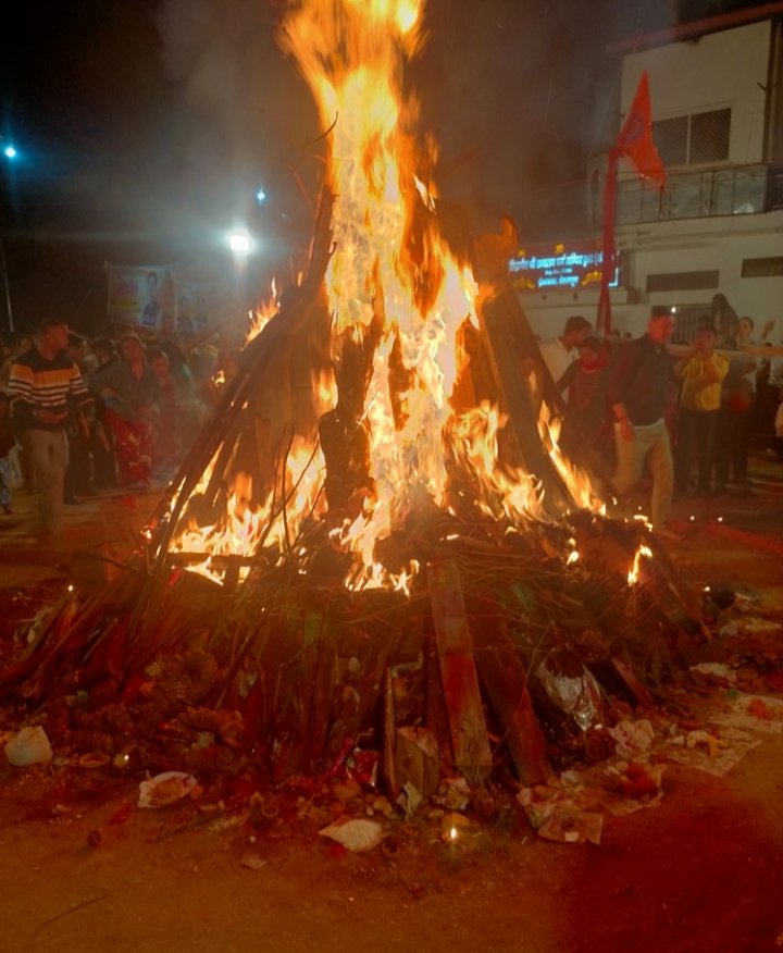 इसके उपरांत विधि-विधान से पूजा-अर्चना की गई और श्रद्धालुओं ने अपने परिवार की सुख-समृद्धि एवं क्षेत्र की खुशहाली की कामना की। रात्रि करीब 9:00 बजे शुभ मुहूर्त में होलिका दहन किया गया। अग्नि प्रज्वलित होते ही श्रद्धालुओं ने परिक्रमा कर सुख-शांति और उन्नति की प्रार्थना की तथा एक-दूसरे को अबीर-गुलाल लगाकर होली की शुभकामनाएं दीं।