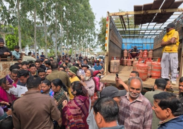 सिलेंडर लेने उमड़ी भीड़, खुली पोल